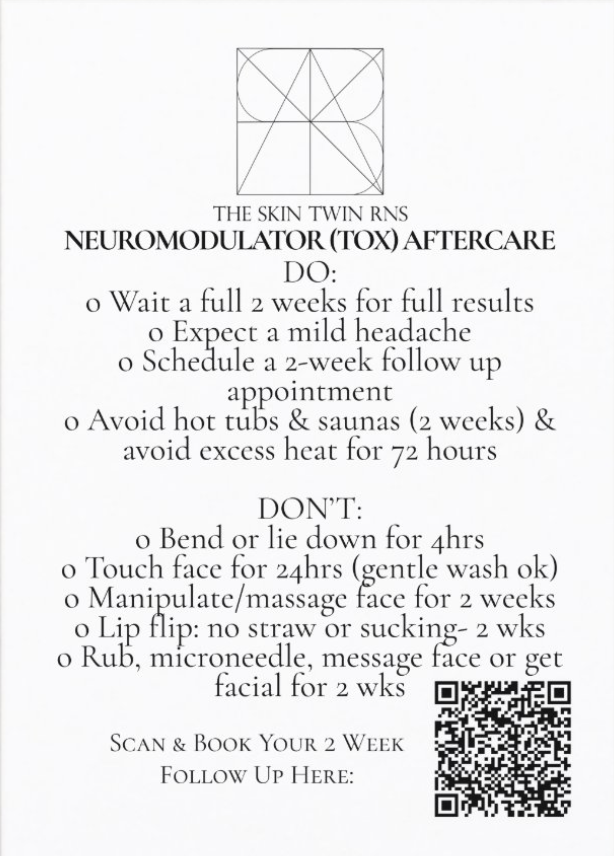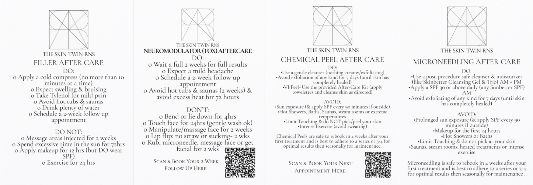 Post-care Instructions, Consents Education Education cards post Tox, filler, peels and microneedling.